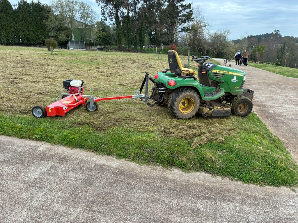 Renovación profunda del suelo para eliminar musgo y fieltro y conseguir un césped sano. Trabajo de 1,20m de ancho.