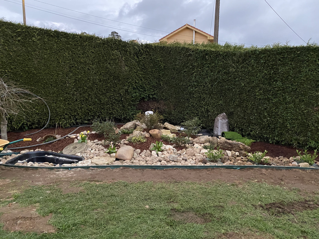 Revisamos el estado de las plantas en cada visita y aplicamos tratamientos preventivos o curativos. También mantenemos zonas especiales: piedras, bordes con mantillo, estanques y áreas de grava.